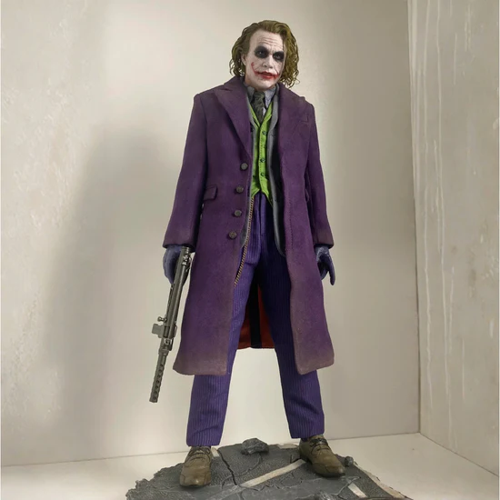 This isn’t just another collectible – it’s a masterpiece of sixth scale artistry. Hot Toys collaborated with Hong Kong Film Director Derek Kwok, a Christopher Nolan enthusiast who spent over a decade perfecting Joker’s costume details. The result is extraordinary: hand-implanted wool hair recreating the iconic green coiffed hairstyle, a newly developed head sculpt with 4.5mm pupils and separate rolling eyeball system, and phenomenal makeup details including the sinister red grin. The custom-tailored purple coat outfit features screen-accurate fabric textures and patterns, all fitted to a unique form-fitting body that maintains perfect articulation under layered clothing.